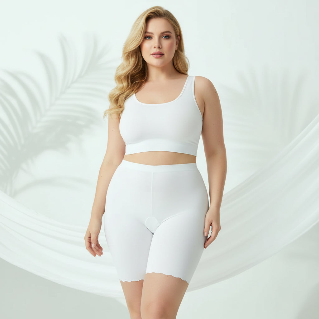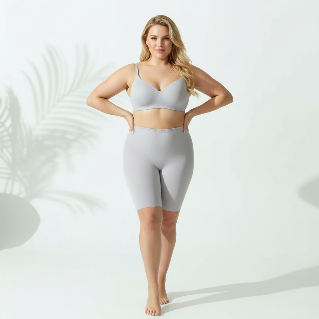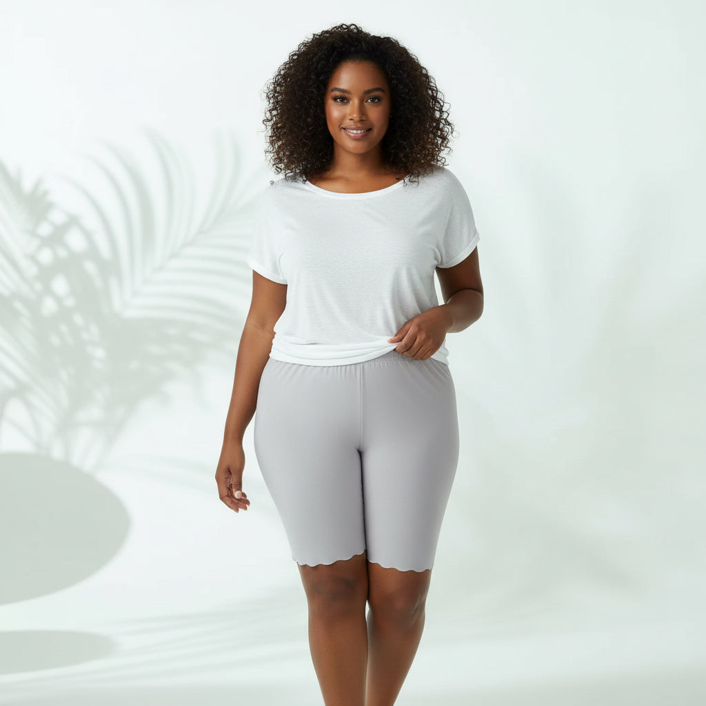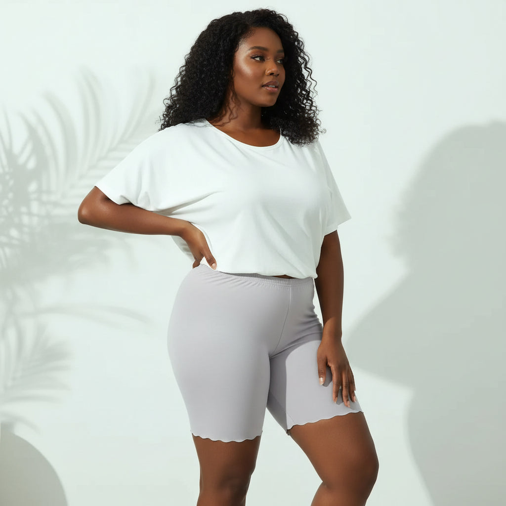 Enjoy all-day comfort and confidence with Seamless Plus Size Under Skirt Shorts. Crafted from ultra-soft, breathable fabric, these lightweight shorts reduce friction, prevent thigh chafing, and stay invisible under your outfit. The seamless construction and flexible stretch create a smooth, flattering fit without digging in.